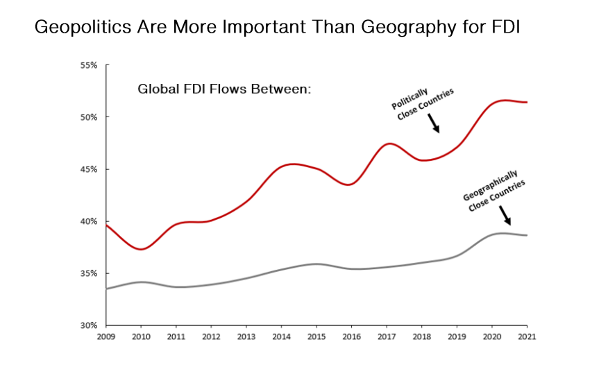 The first two points illustrate Vietnam’s unique position in the world’s evolving geopolitical landscape, which benefits investors because multinational companies that set up a factory in Vietnam need not worry about being able to sell their products into the US market nor their ability to access production inputs from China since Vietnam is being actively courted by both countries. The IMF, Atlantic Council and others have highlighted that geopolitics is becoming an increasingly important factor in how companies decide which countries to invest in, which can be seen below.